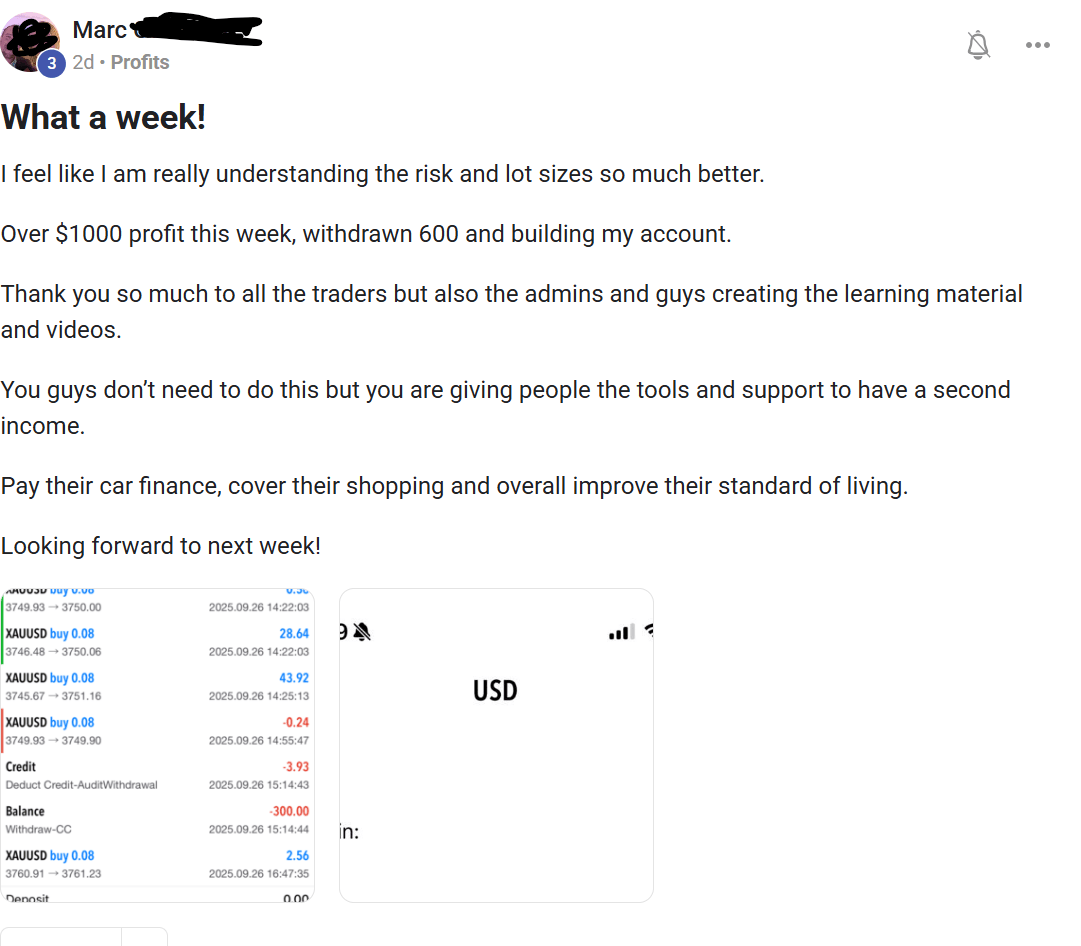 Join our thriving trading community with members from all over the world, aged between 18-70 years old. All with the same goal of wanting to extract profits from the markets daily.